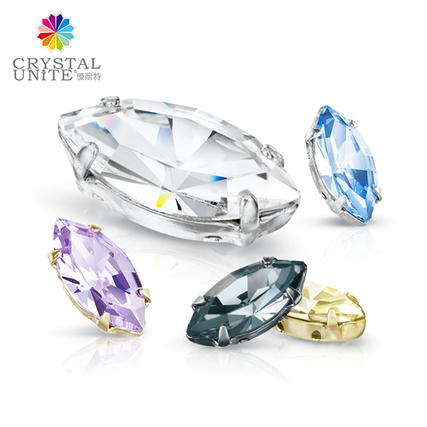 K9 Glass Navette Shape Fantasia Pedra Sew-on Stud Glass Rhinestone Beads em latão sem chumbo 4-Claw Setting para High-End Market