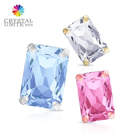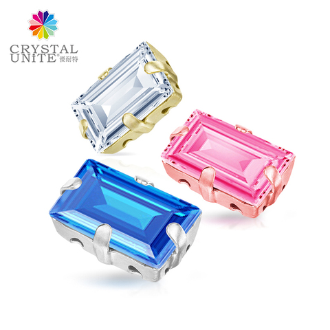 Avançado Custom-made longo retângulo forma cristal vidro Chaton fantasia pedra Sew-on Stud strass conjunto em costura garra quadro