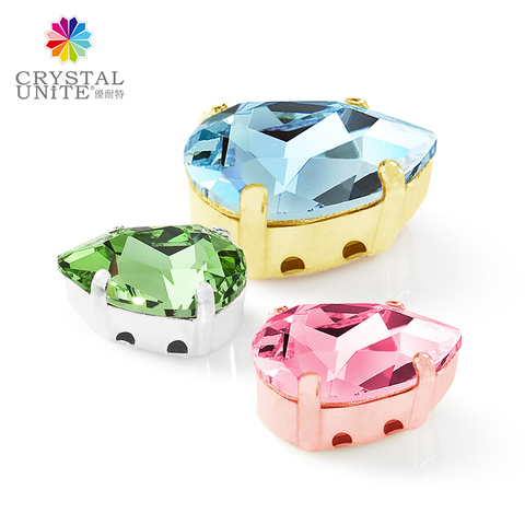 Excelente Qualidade Waterdrop Shape Point Voltar Sew-On Fantasia Pedra Montada em Brass Claw Setting Frame Grânulos de vidro Strass